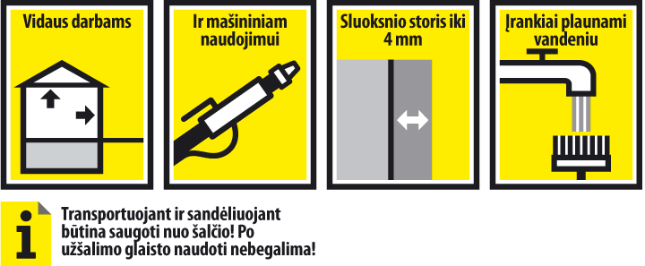 - Visais atvejais pirmiausia reikia vadovautis informacija, pateikta ant medžiagos pakuotės arba ją lydinčiuose dokumentuose!
