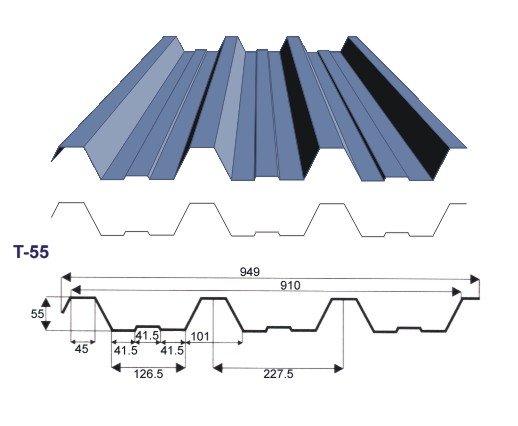 Profilio aukštis – 18 mm Šerdies storis – 0,5 mm Naudingas plotis – 1128 mm Bendras plotis – 1148 mm Maksimalus rekomenduojamas lapo ilgis – 8000 mm Minimalus lapo ilgis – 500 mm Paskirtis – stogas/elevacija