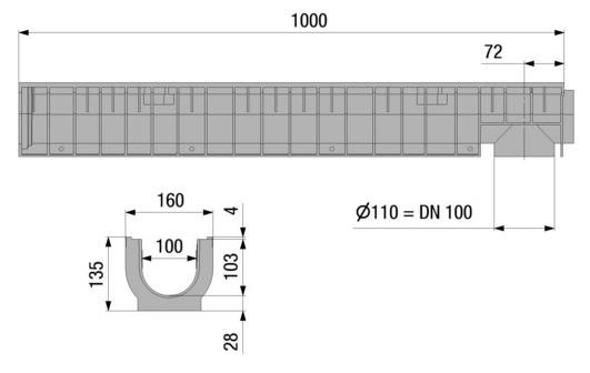 Latakas su cinkuoto plieno užrakinamomis grotelėmis RECYFIX STANDARD 100